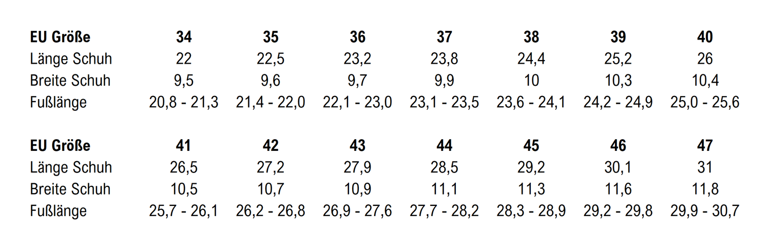 Größentabelle