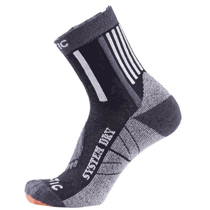 Die anatomisch geformte Socke wurde entwickelt, um eine perfekte Zusammenarbeit zwischen Fuß und Schuh zu Unternehmen. Die unterschiedliche Form für den rechten und linken Fuß erhöht den Komfort und die Funktionalität der Socke. Es enthält spezielle Kanäle zur Erhöhung der Atmungsaktivität im Spannbereich des Fußes mit antikem Schutz mit silbernen Elementen.